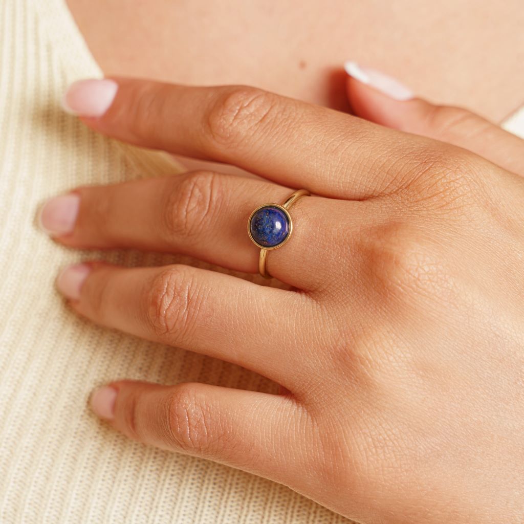 الخاتم مزين بأحجار طبيعية، وقد تختلف درجات ألوانها من قطعة لأخرى.