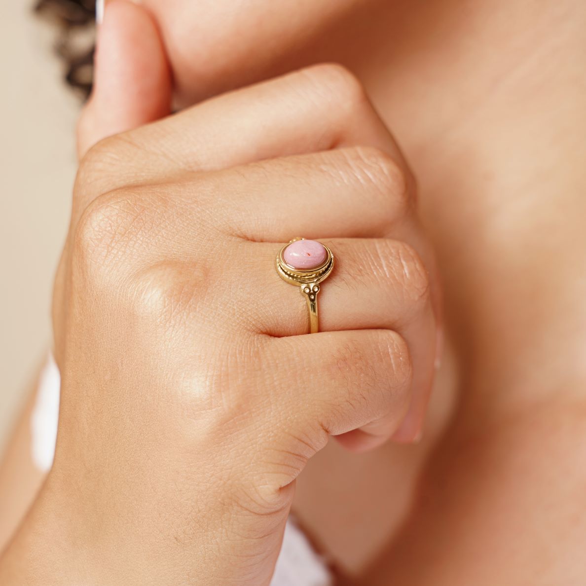 الخاتم مزين بأحجار طبيعية، وقد تختلف درجات ألوانها من قطعة لأخرى.