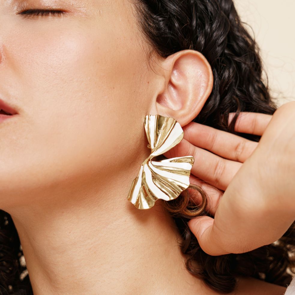 أقراط من الفولاذ المقاوم للصدأ بلمسات نهائية  من الذهب