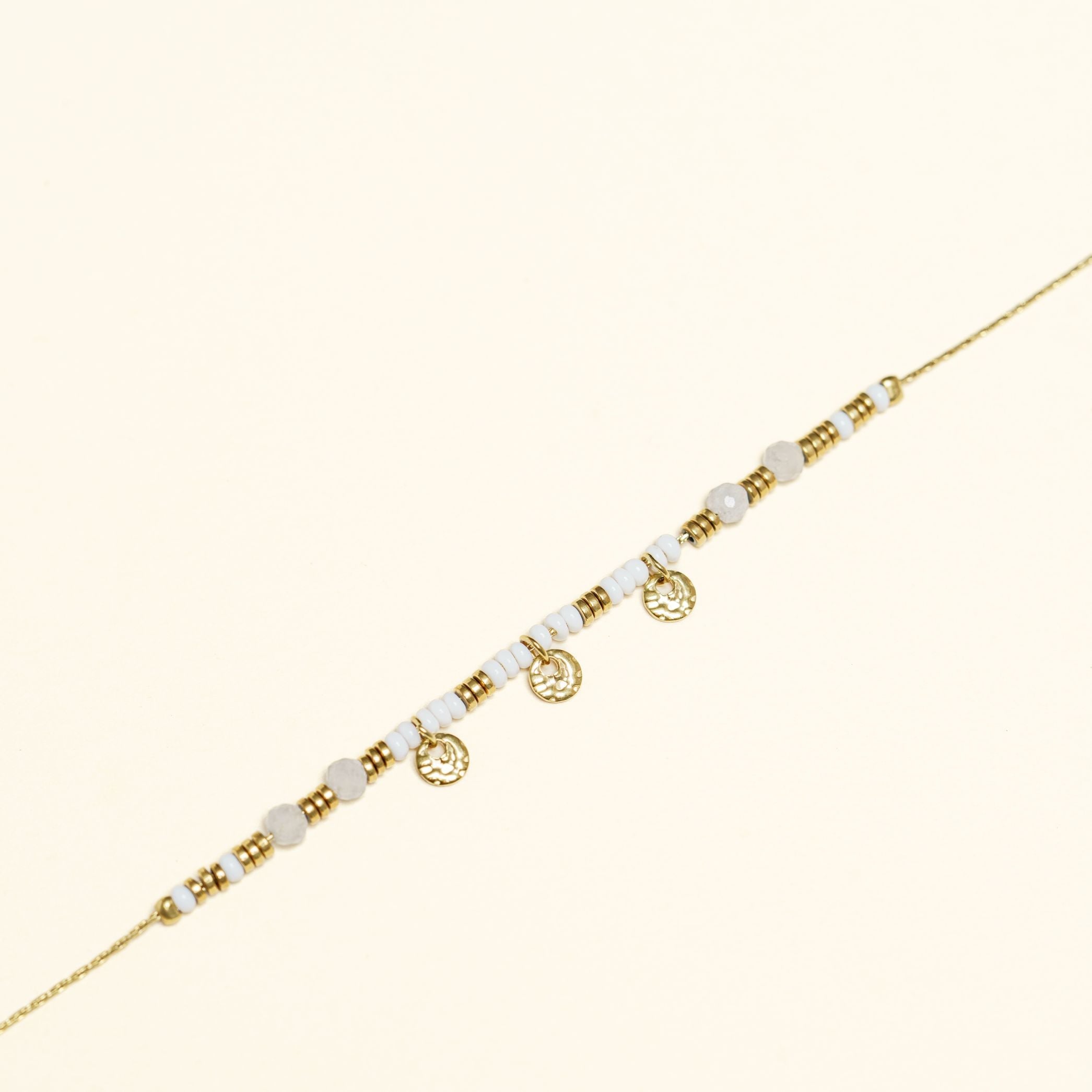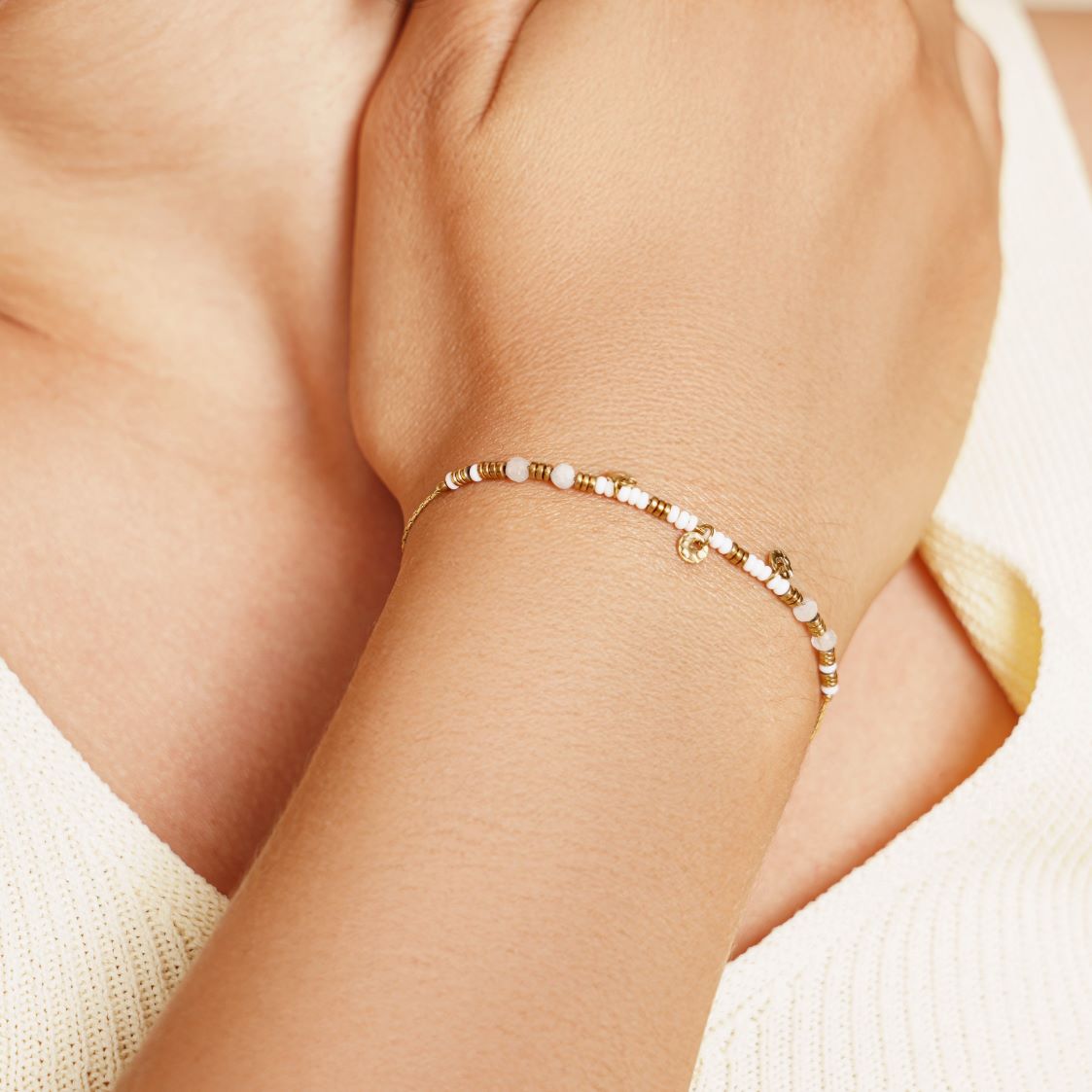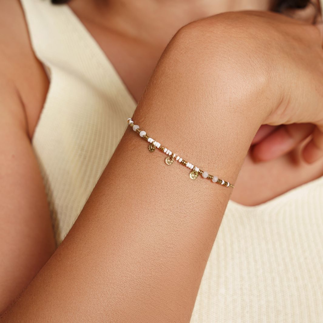 السوار مزين بأحجار طبيعية، وقد تختلف درجات ألوانها من قطعة لأخرى.