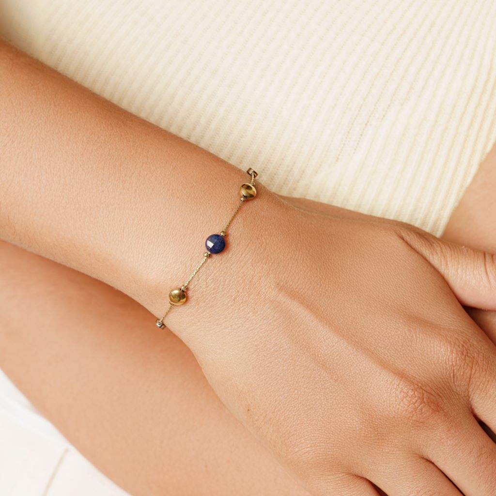 السوار مزين بأحجار طبيعية، وقد تختلف درجات ألوانها من قطعة لأخرى.
