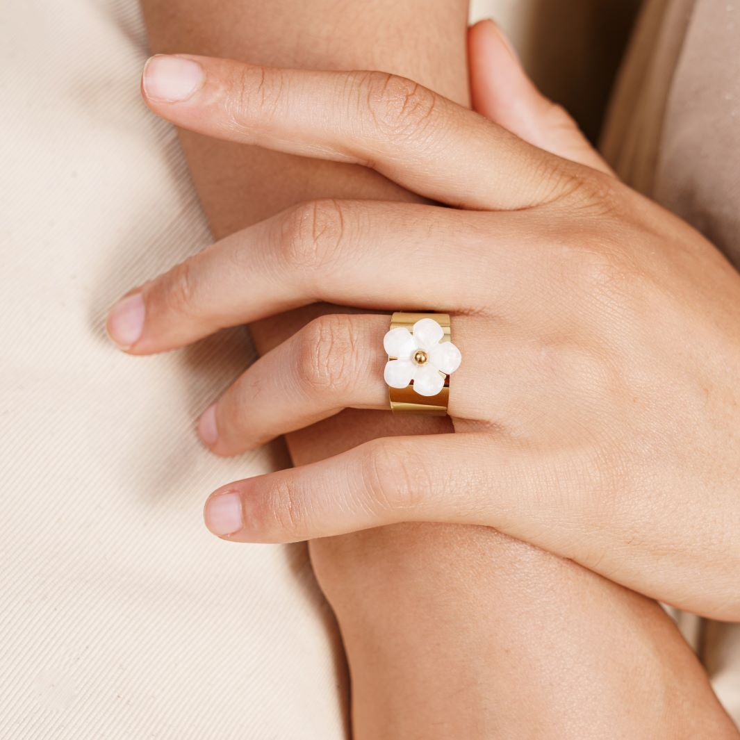 الخاتم مزين بأحجار طبيعية، وقد تختلف درجات ألوانها من قطعة لأخرى.