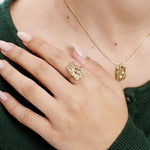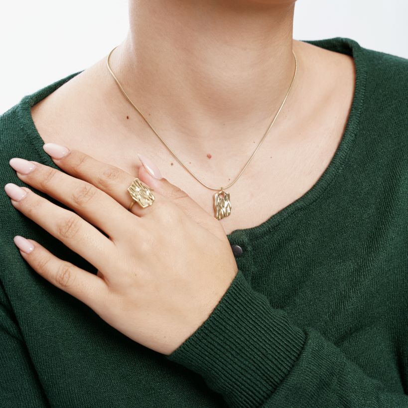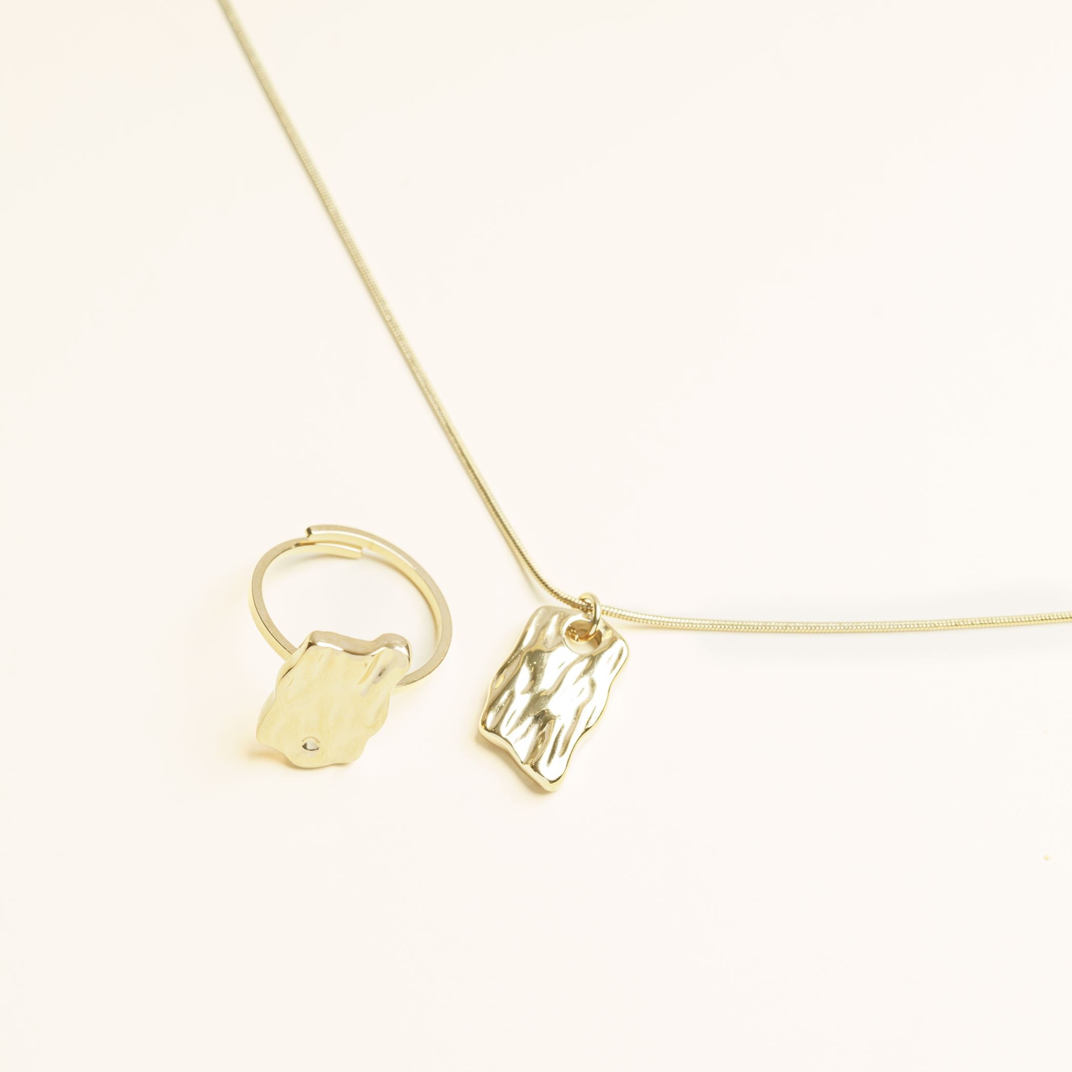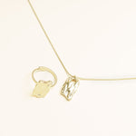 طقم مكون من قلادة +  خاتم  مصنوع من الفولاذ المقاوم للصدأ بلمسات نهائية بالذهب