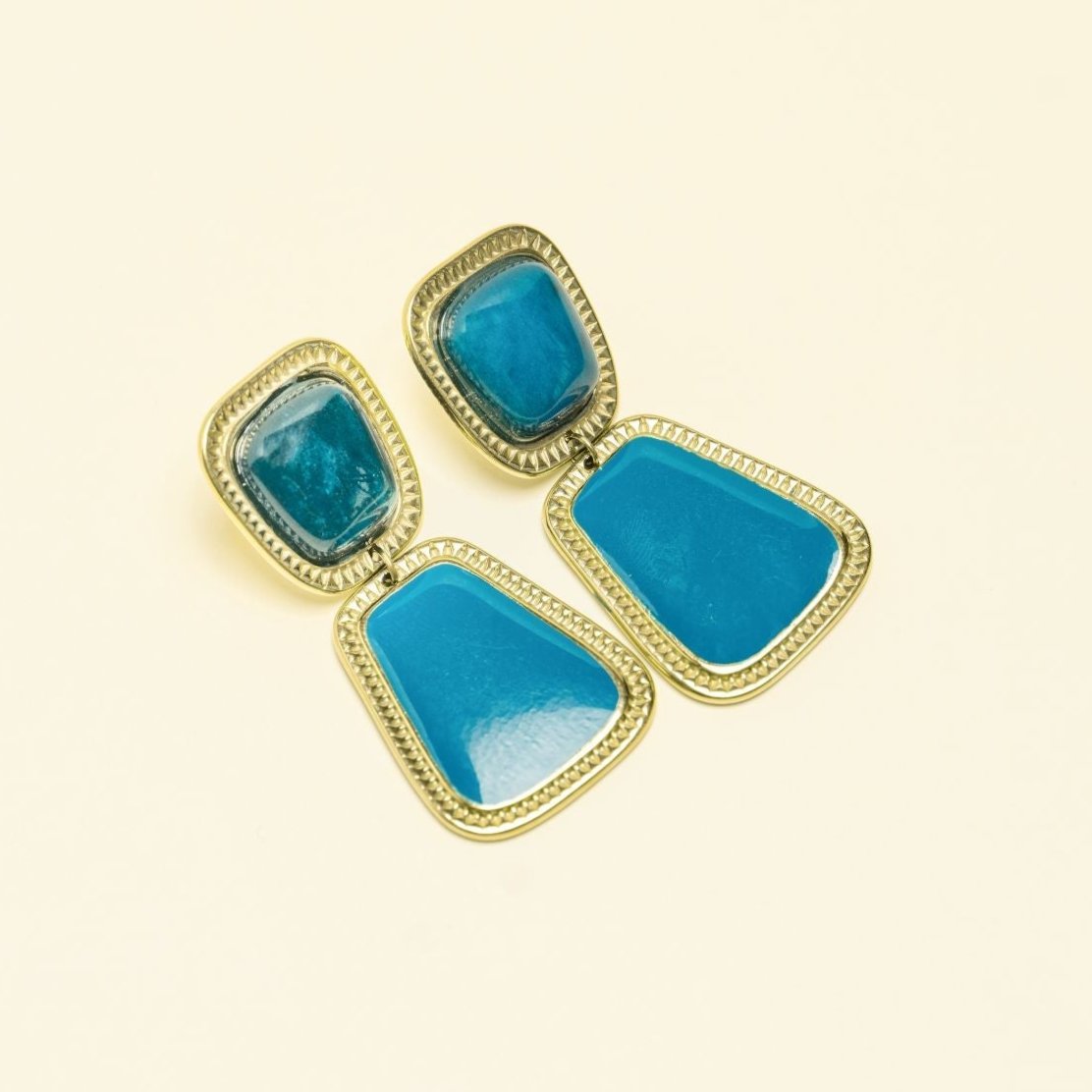 أقراط من الفولاذ المقاوم للصدأ بلمسات نهائية  من الذهب بلمسات من المينا الملون.