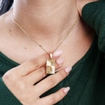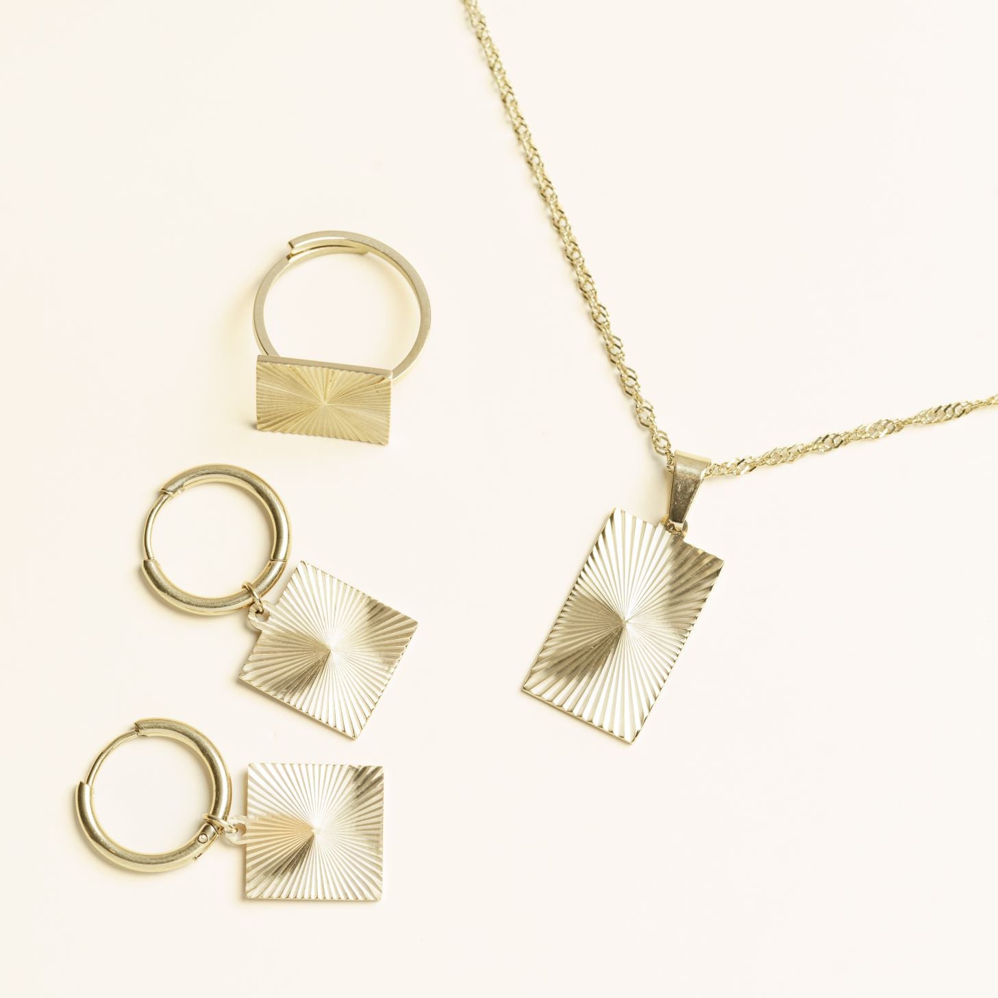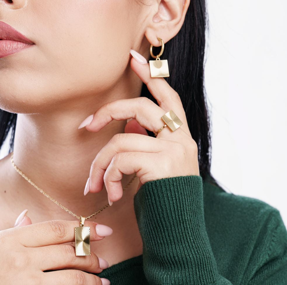 طقم مكون من قلادة + أقراط + خاتم  مصنوع من الفولاذ المقاوم للصدأ بلمسات نهائية بالذهب