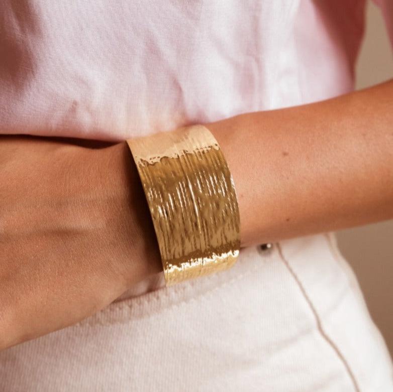 سوار مفتوح من الفولاذ المقاوم للصدأ بلمسات نهائية من الذهب