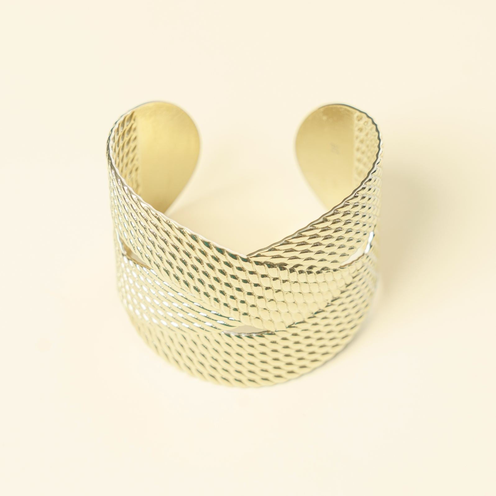 سوار مفتوح من الفولاذ المقاوم للصدأ بلمسات نهائية  من الذهب