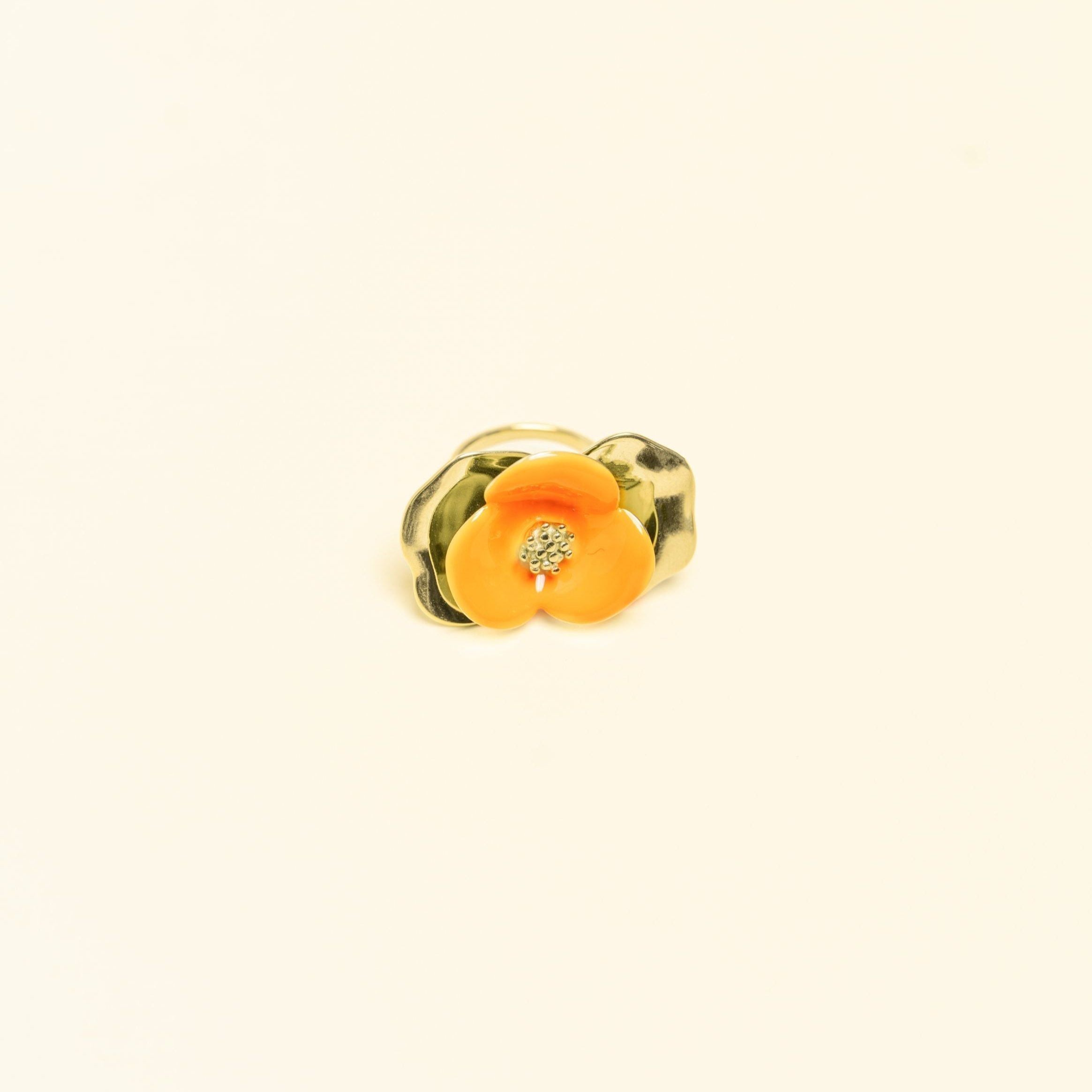 خاتم قابل للتعديل من الفولاذ المقاوم للصدأ بلمسات نهائية من الذهب بلمسات نهائية من المينا الملونة.