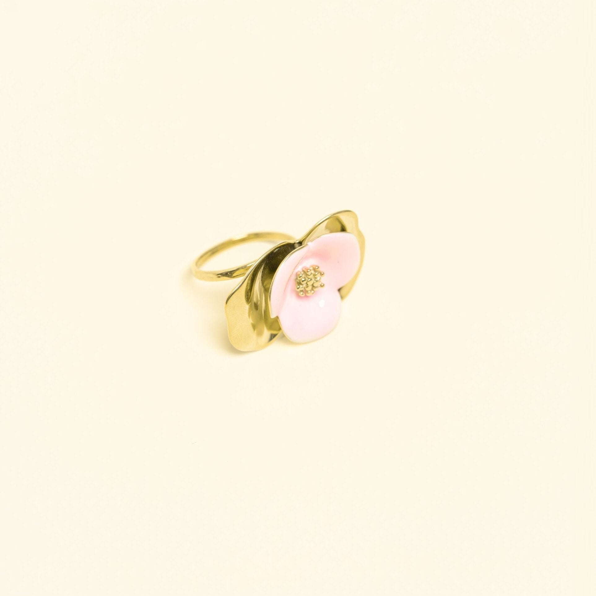 خاتم قابل للتعديل من الفولاذ المقاوم للصدأ بلمسات نهائية من الذهب بلمسات نهائية من المينا الملونة.