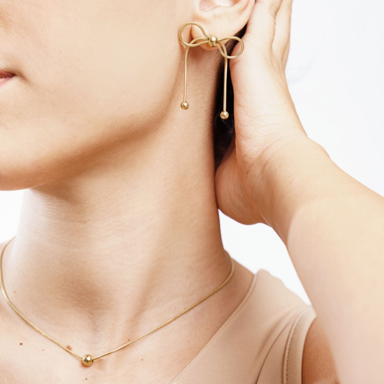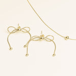طقم مكون من  قلادة +أقراط مصنوع من الفولاذ المقاوم للصدأ بلمسات نهائية من الذهب