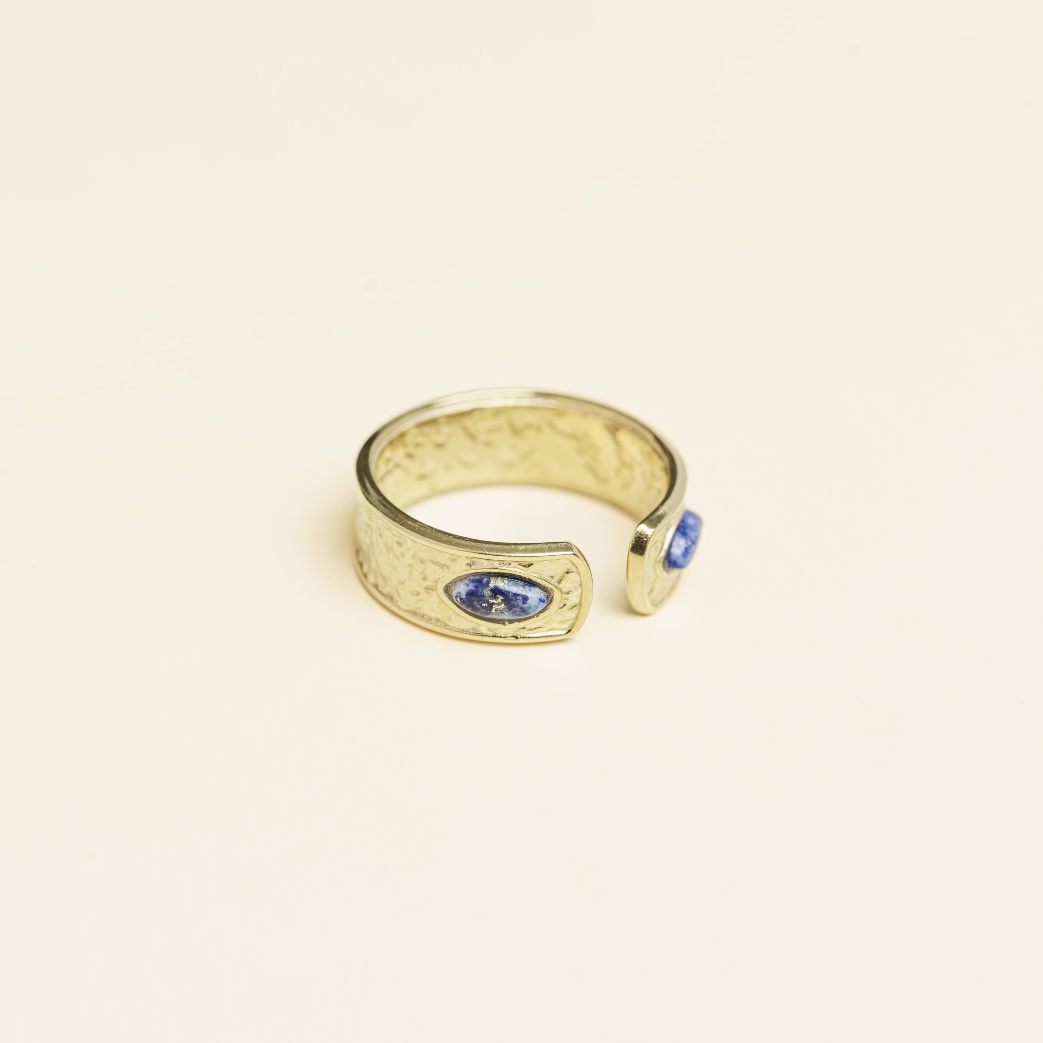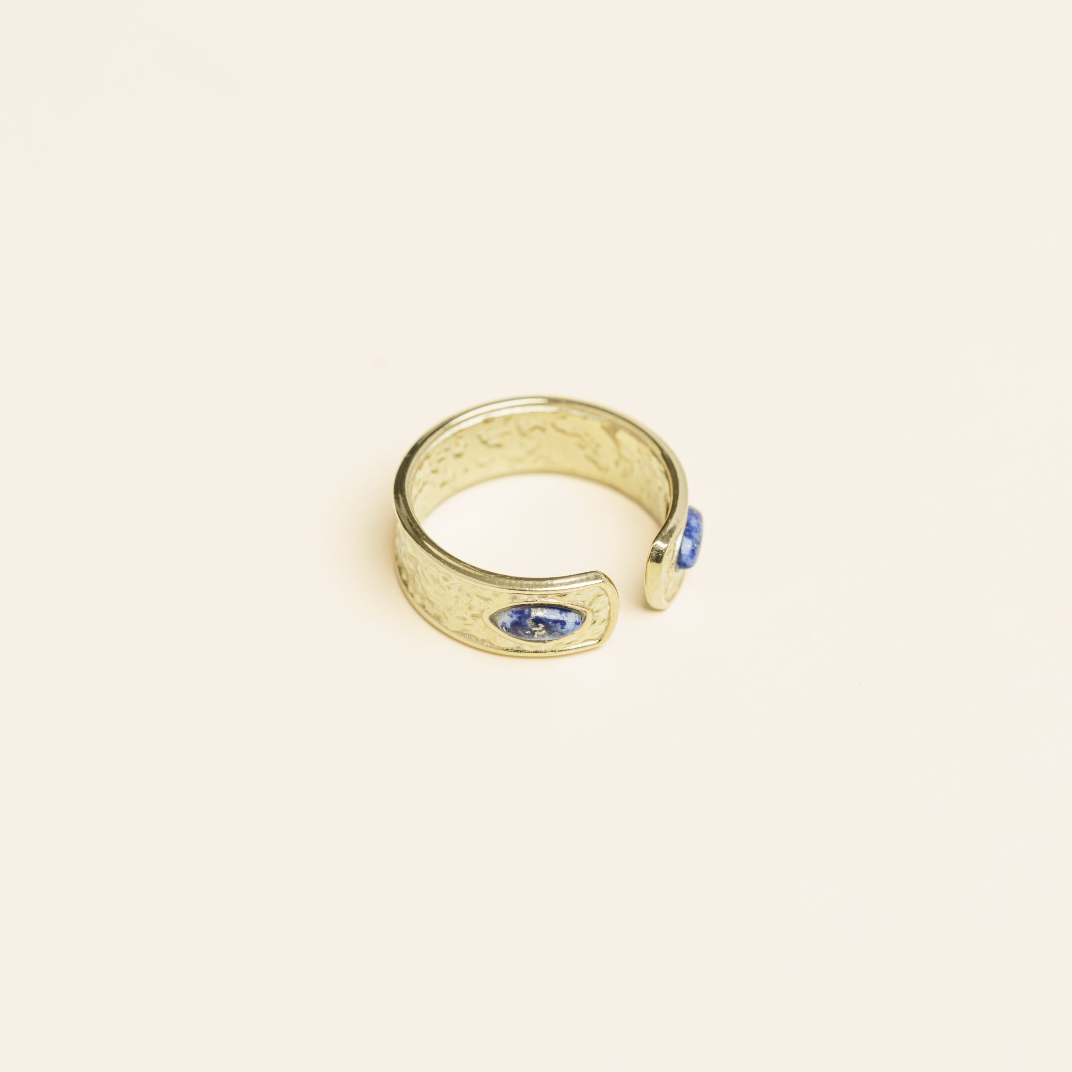 الخاتم مزين بأحجار طبيعية، وقد تختلف درجات ألوانها من قطعة لأخرى.