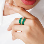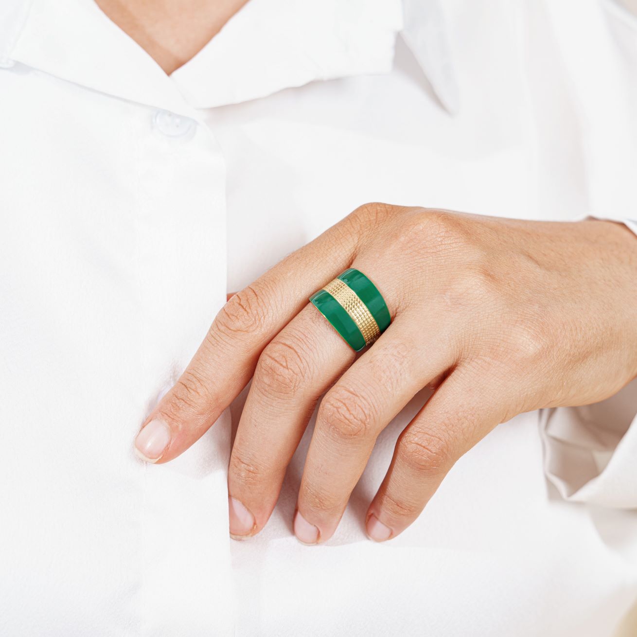 خاتم قابل للتعديل من الفولاذ المقاوم للصدأ بلمسات نهائية من الذهب بلمسات نهائية من المينا الملون.