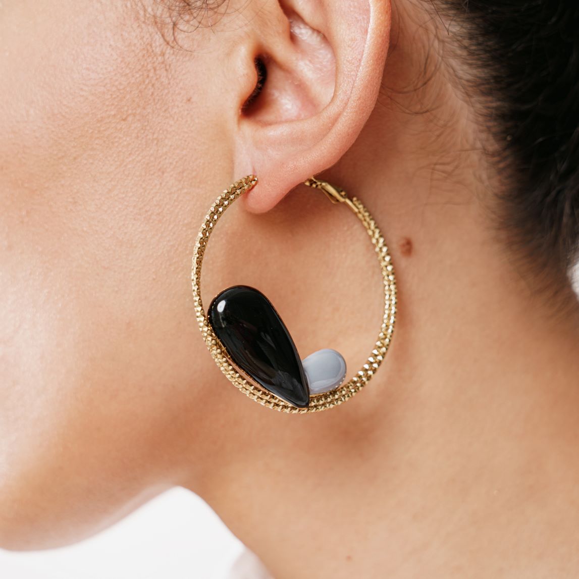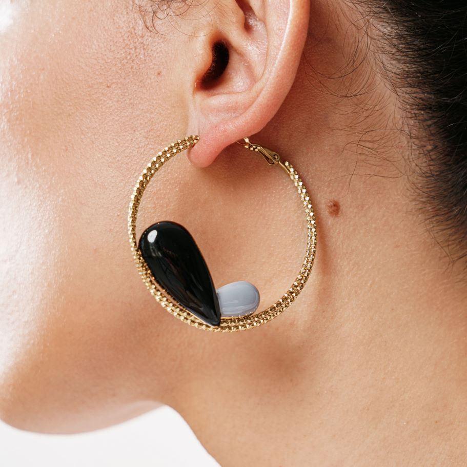 أقراط من الفولاذ المقاوم للصدأ بلمسات نهائية  من الذهب بلمسات نهائية من المينا الملون.