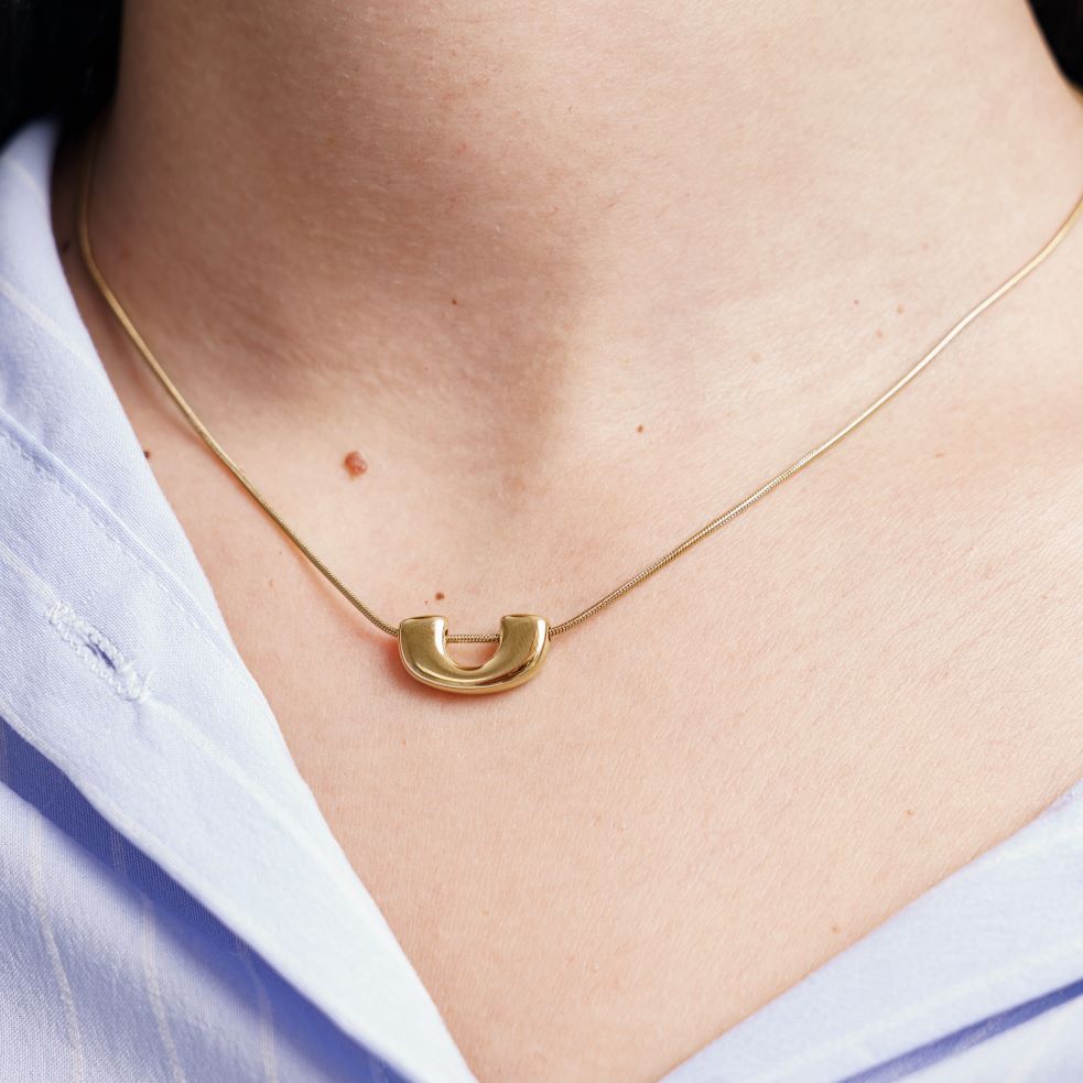 قلادة من الفولاذ المقاوم للصدأ بلمسات نهائية من الذهب
