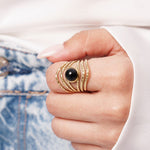 خاتم قابل للتعديل من الفولاذ المقاوم للصدأ بلمسات نهائية من الذهب
