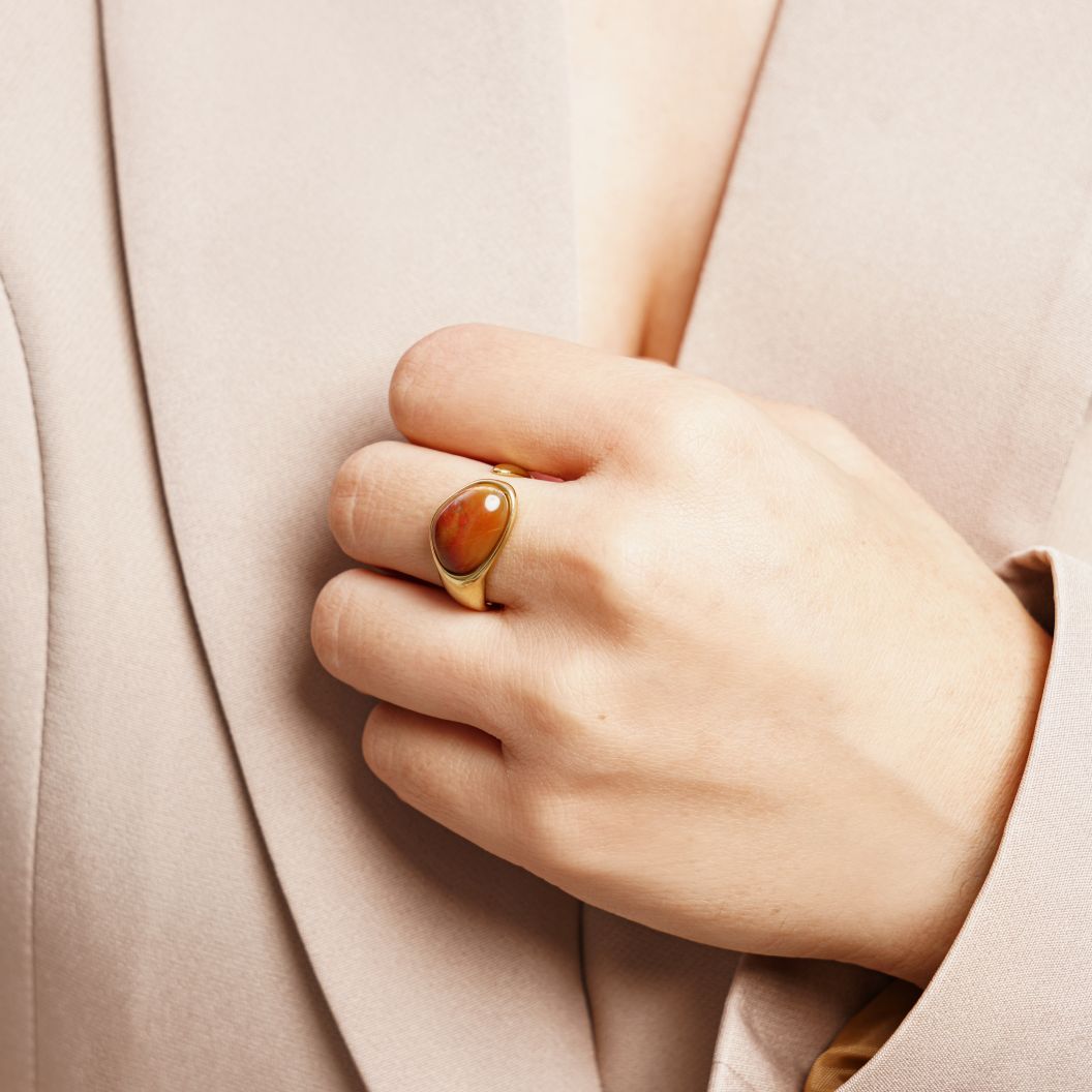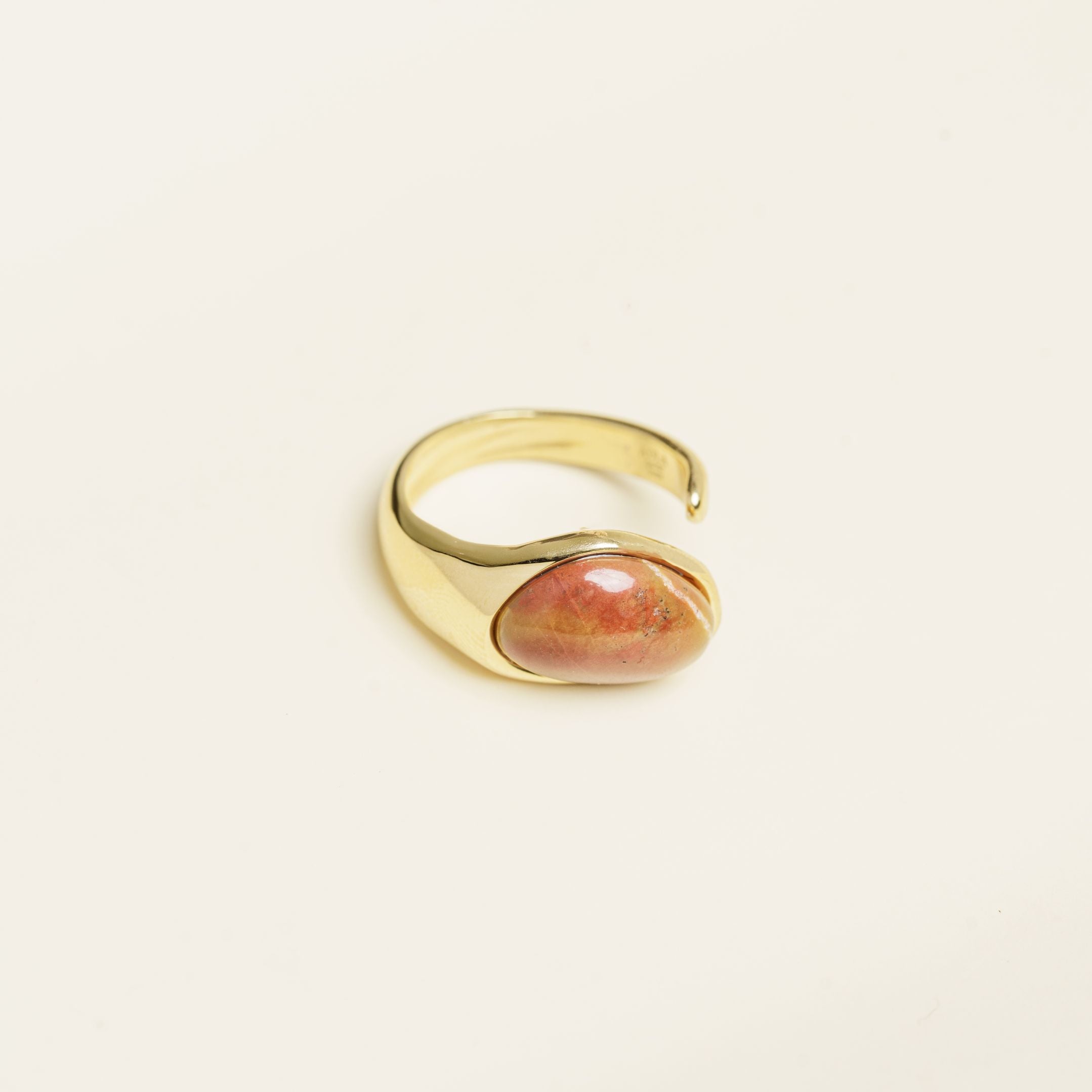 الخاتم مزين بأحجار طبيعية، وقد تختلف درجات ألوانها من قطعة لأخرى.