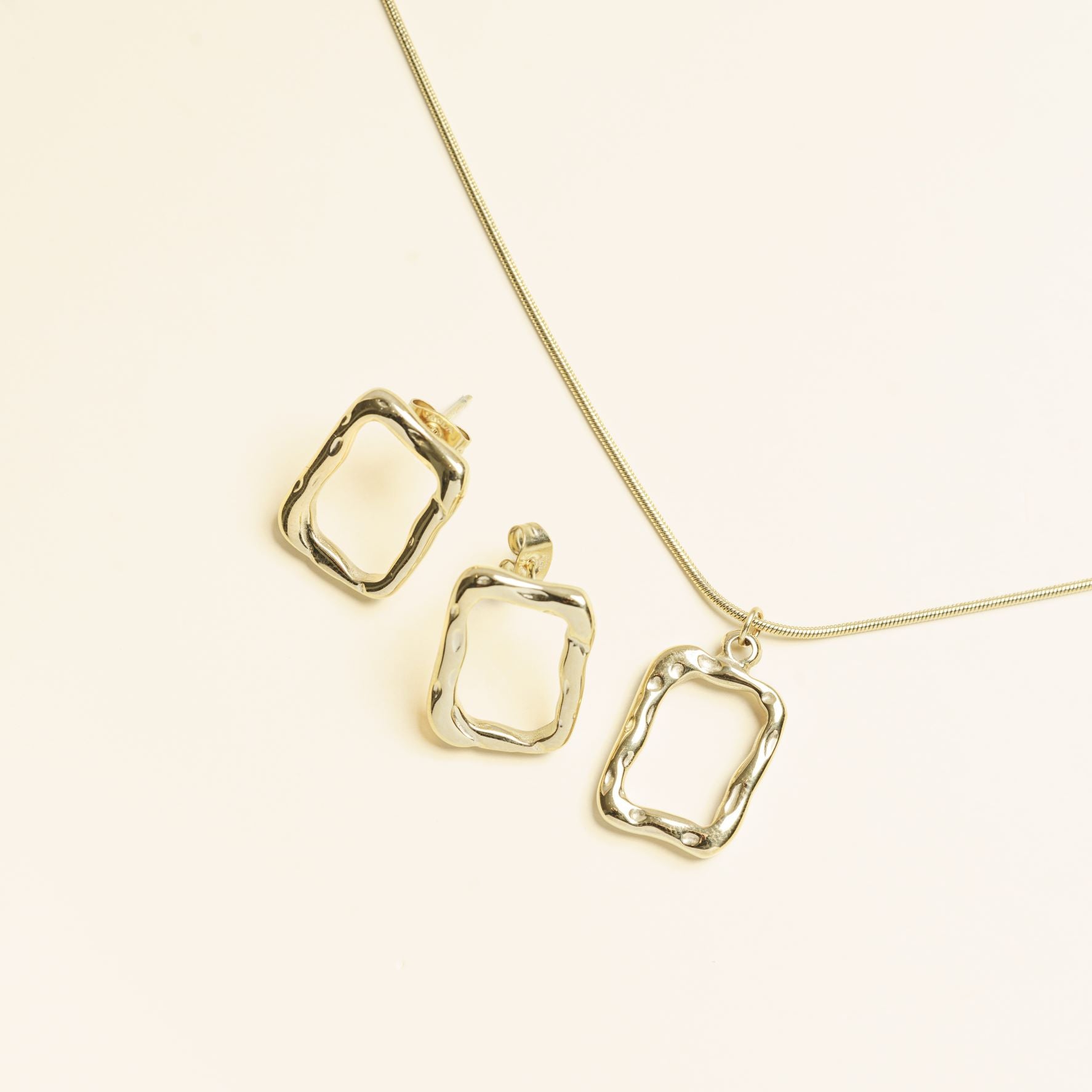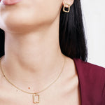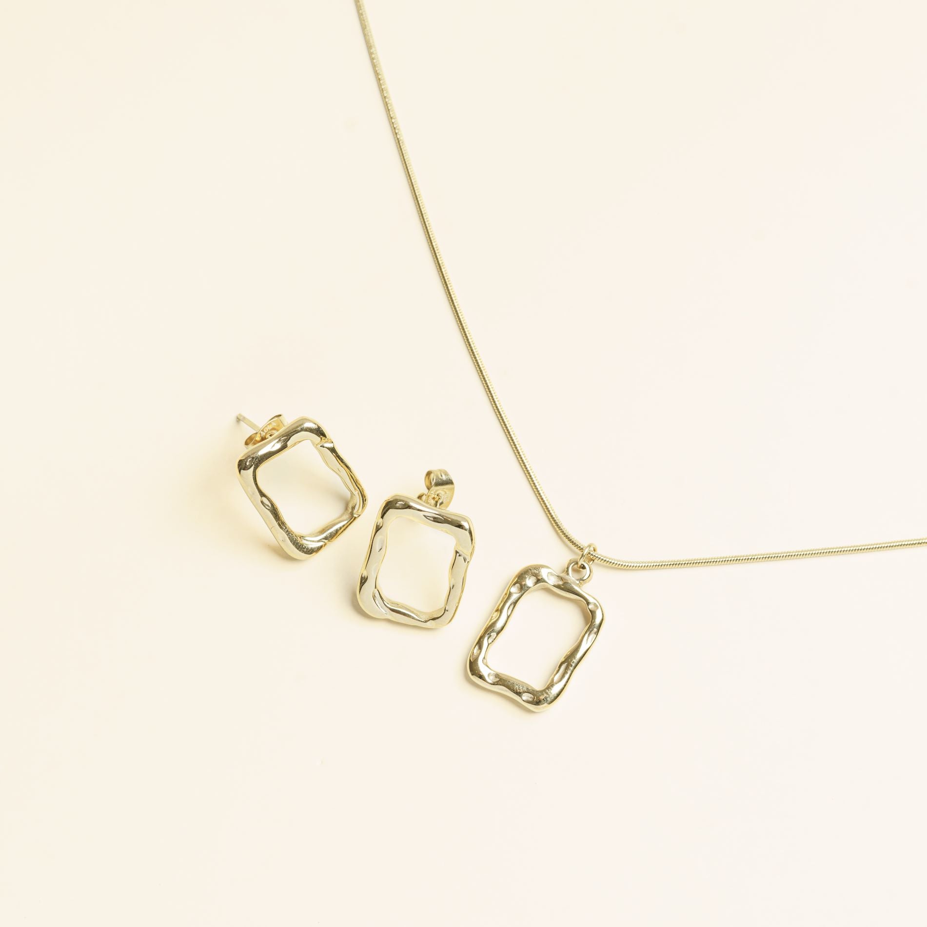 طقم مكون من قلادة + أقراط   مصنوع من الفولاذ المقاوم للصدأ بلمسات نهائية بالذهب