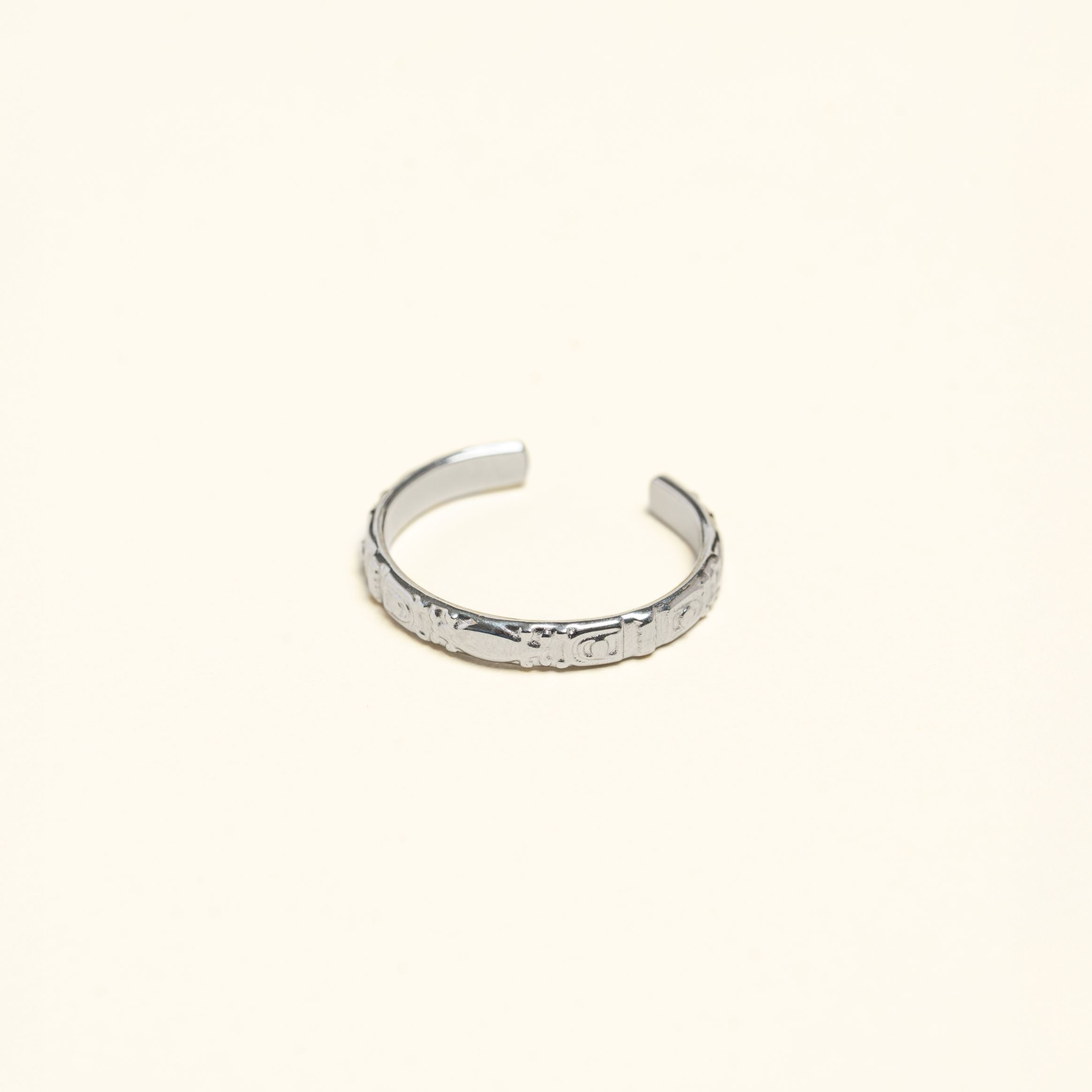 Bague ajustable en acier inoxydable finition argentée.