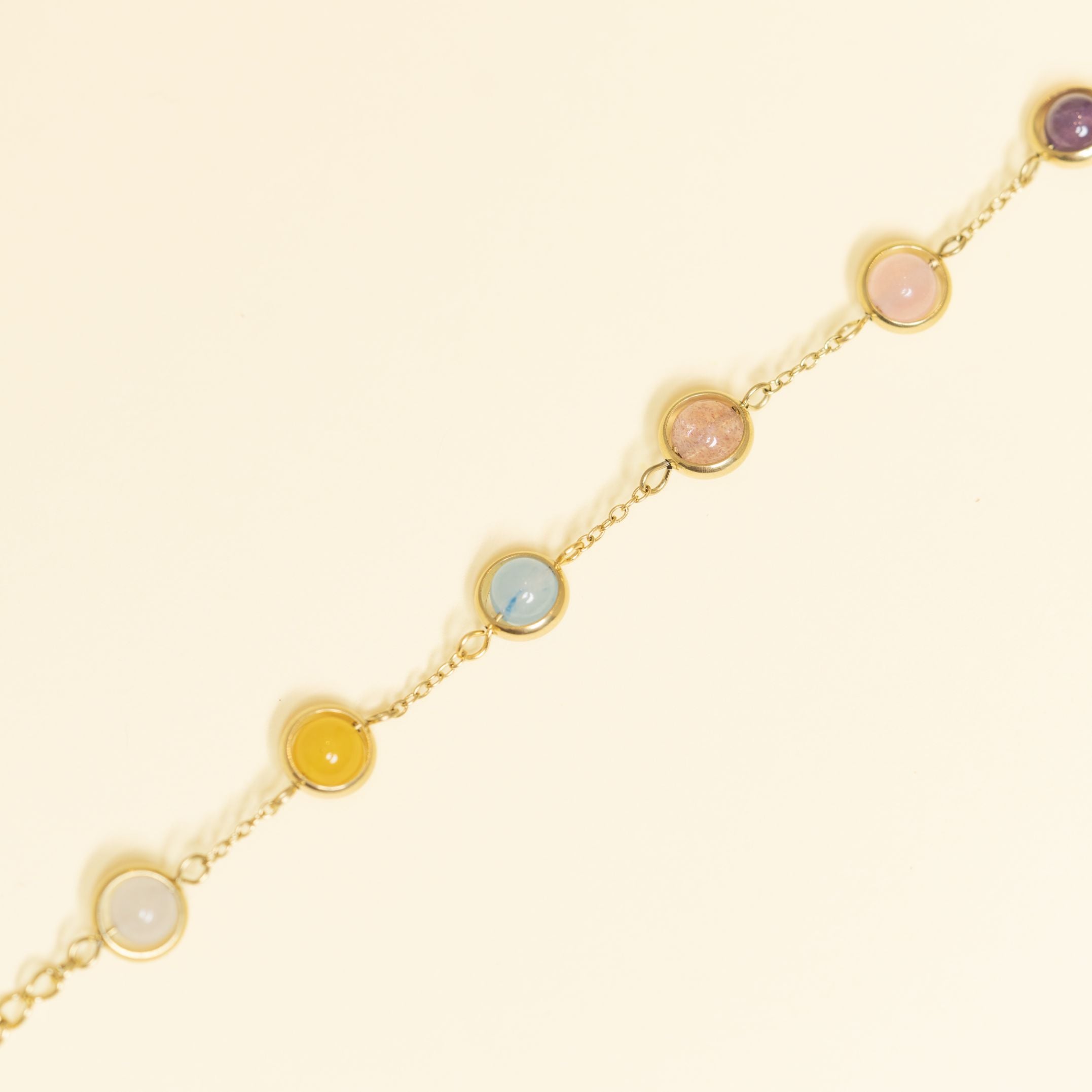 Gourmette en acier inoxydable doré à l'or fin, ornée de perles de cristal.