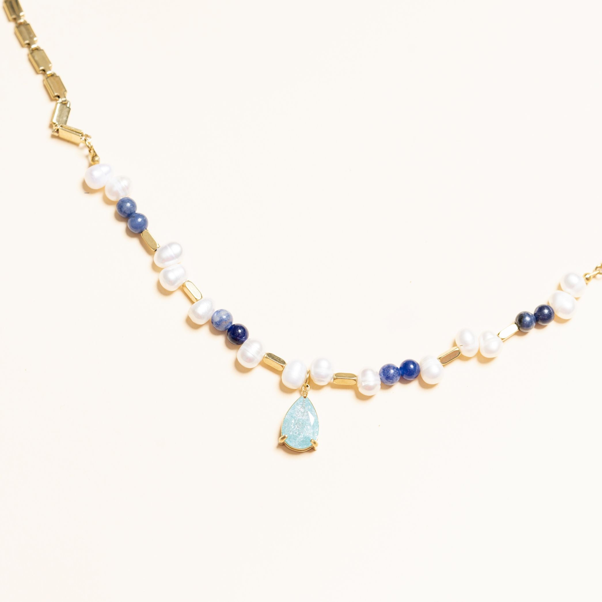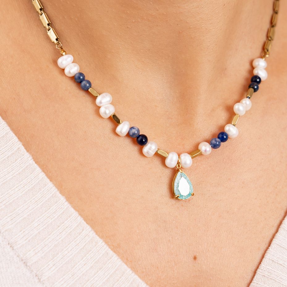 • Pierres naturelles semi-précieuses : Perle d'eau douce, Sodalite.