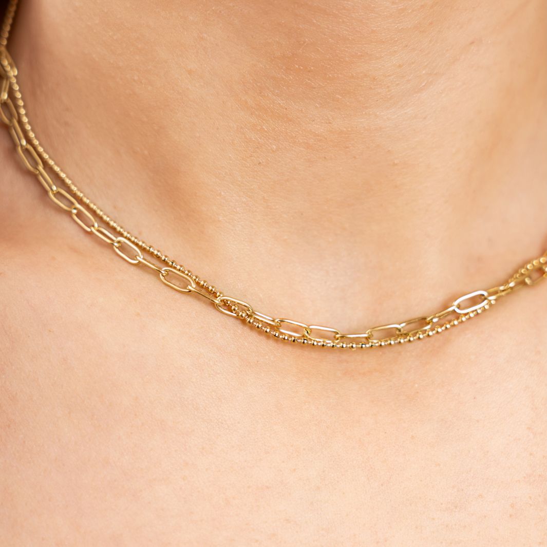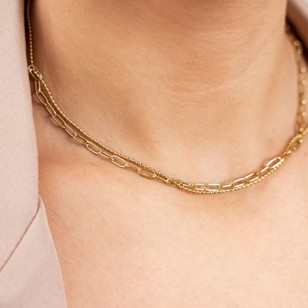 Collier double chaine en acier inoxydable doré à l'or fin.