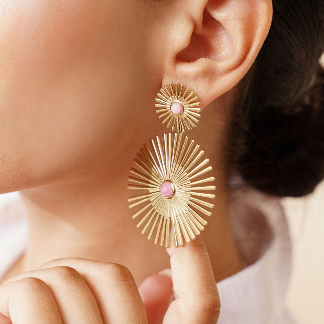 Bijoux ornés de pierres naturelles, dont les teintes peuvent varier d'une pièce à l'autre.