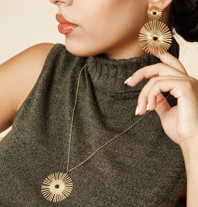 Parure Collier Sautoir + Boucles en acier inoxydable doré à l'or fin.