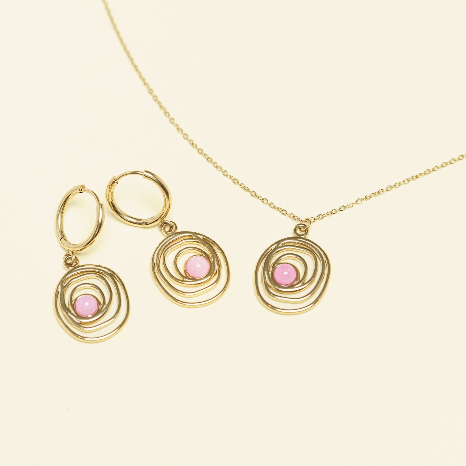 Parure Collier + Boucles  en acier inoxydable doré à l'or fin.