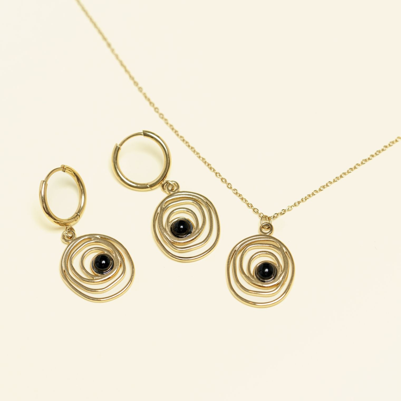 Parure Collier + Boucles  en acier inoxydable doré à l'or fin.